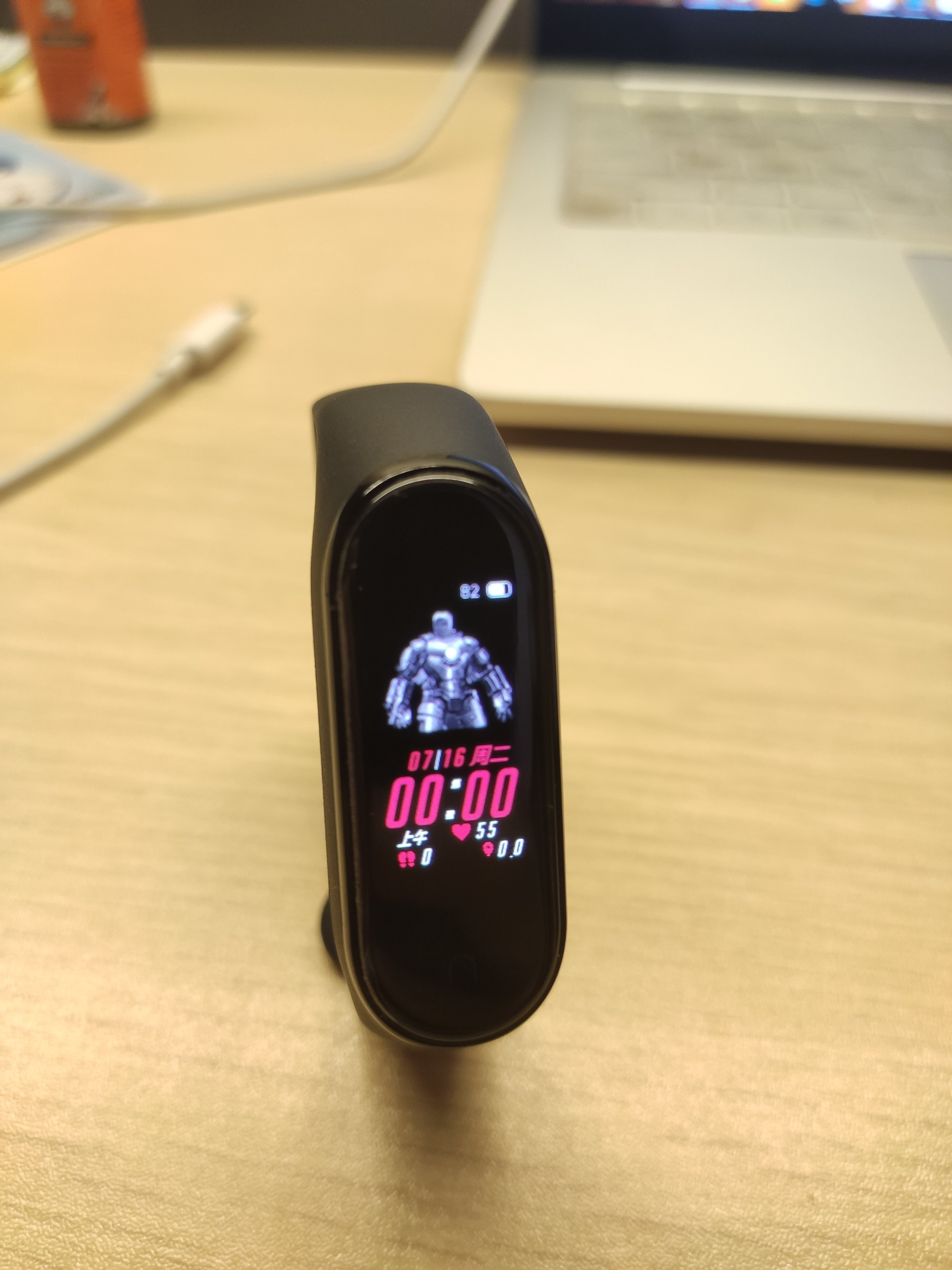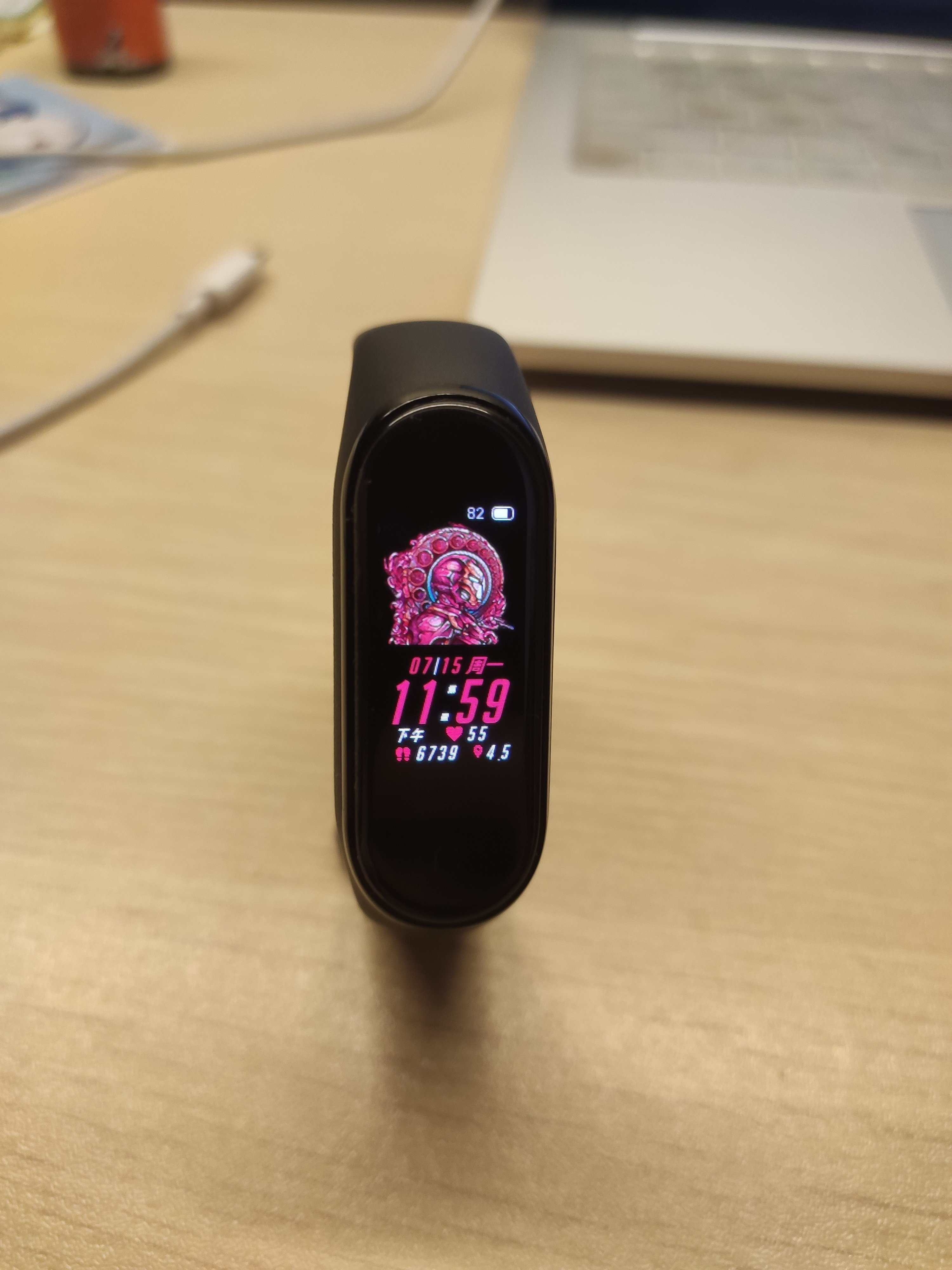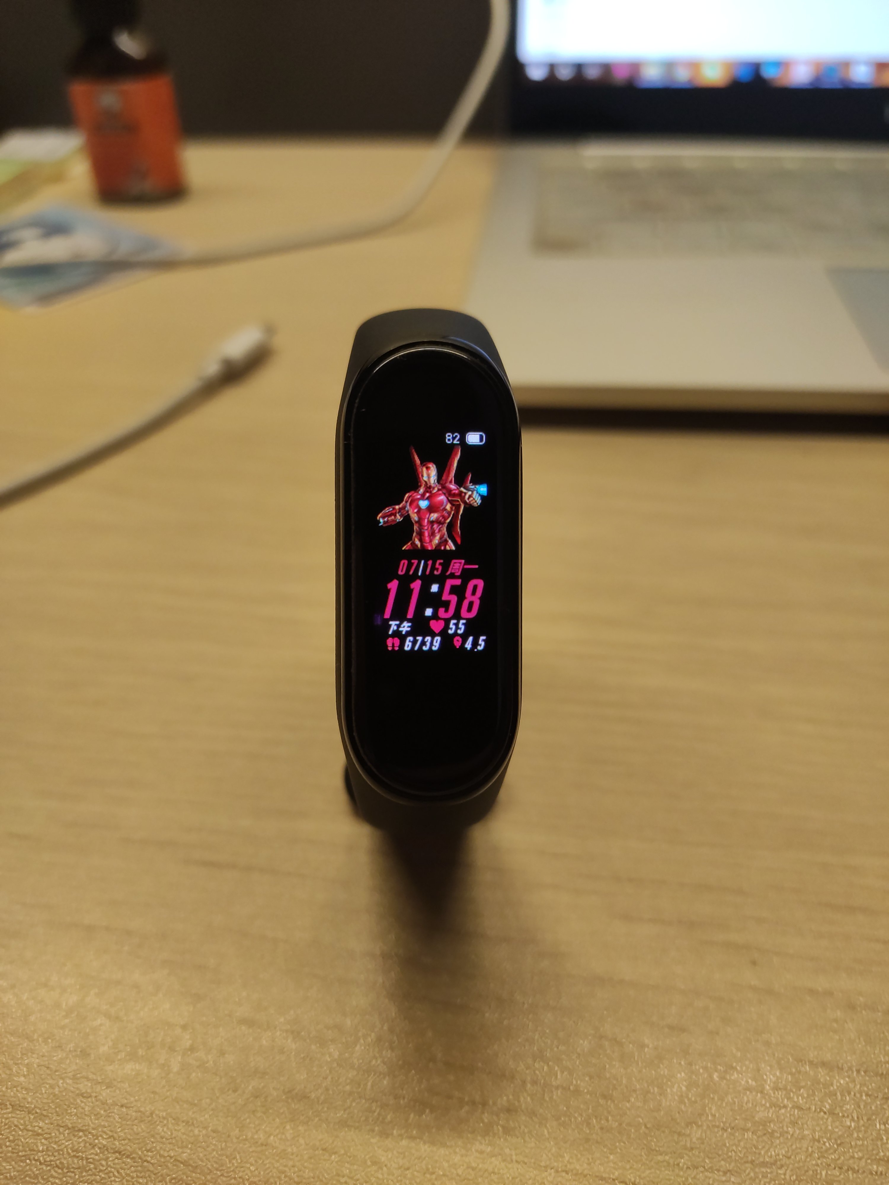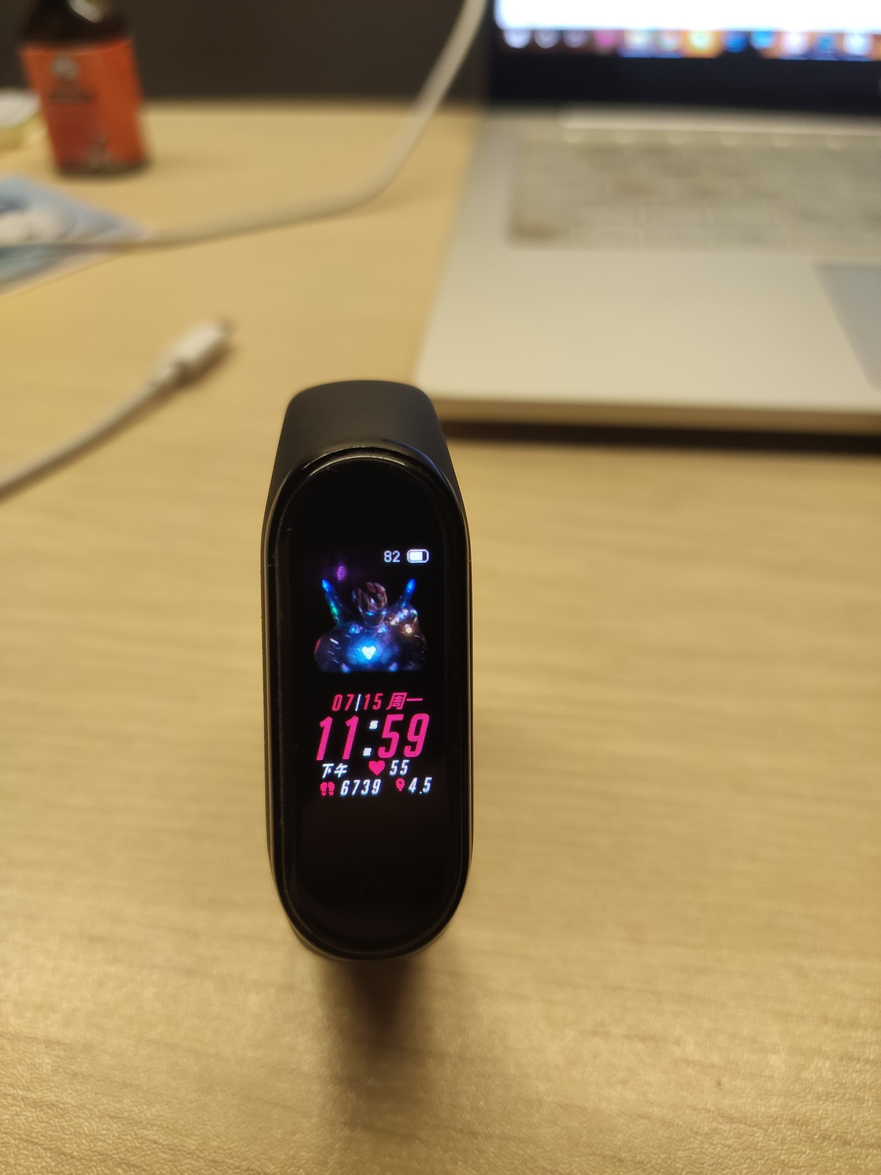展示的信息丰富,电量、心率、步数、里程数都有。