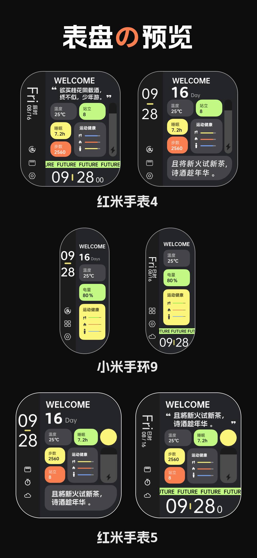 这次适配了小米手环9Pro/红米手表5,为红米手表4重新制作了一个版本(请之前购买过的用户联系我,以便获取更新)