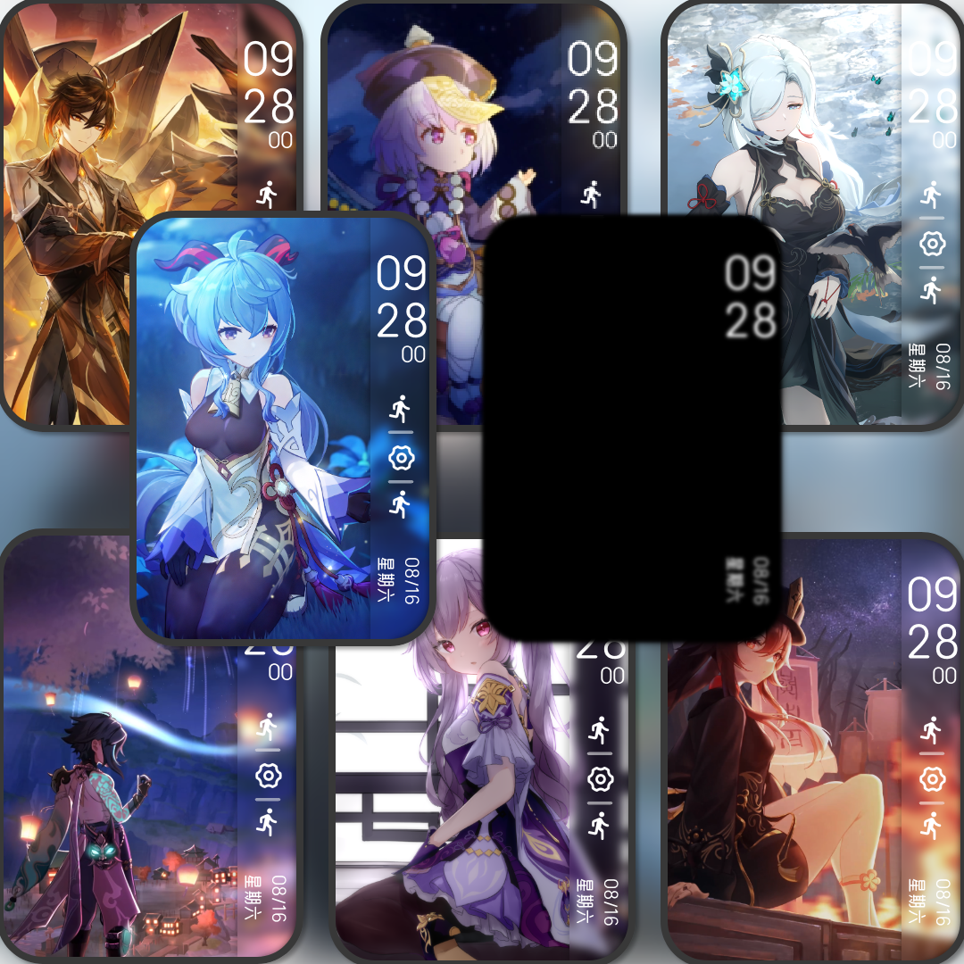 多样式小组件列表:设置,心率,卡包,天气,倒计时,运动,压力