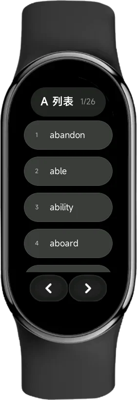 点击后会显示一个由26个字母构成的列表,你可以点击查看相应首字母的详细单词列表
