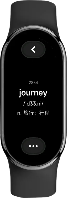 你可以左右滑动来切换单词,每一个卡片都有英文、音标和释义