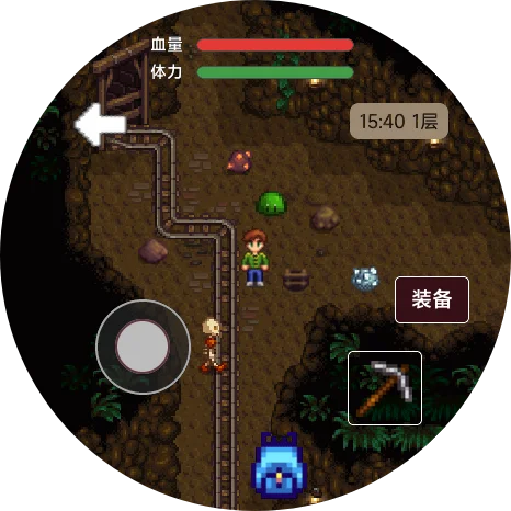 沉浸式体验:摇杆交互,高自由度,120层各色超大地图,十余种不同怪物、矿物、武器任你挑战与收集。