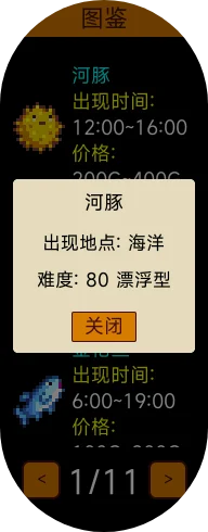 沉浸式体验:多地图 + 时间流逝,体感,全屏点击操作;多达60种可钓鱼类。