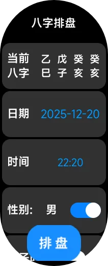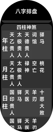 1.显示当前八字。 2.新增四柱神煞。 3.晚子时选择。 4.优化内存策略。