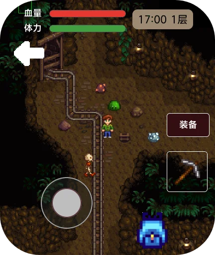 沉浸式体验:摇杆交互,高自由度,120层各色超大地图,十余种不同怪物、矿物、武器任你挑战与收集。