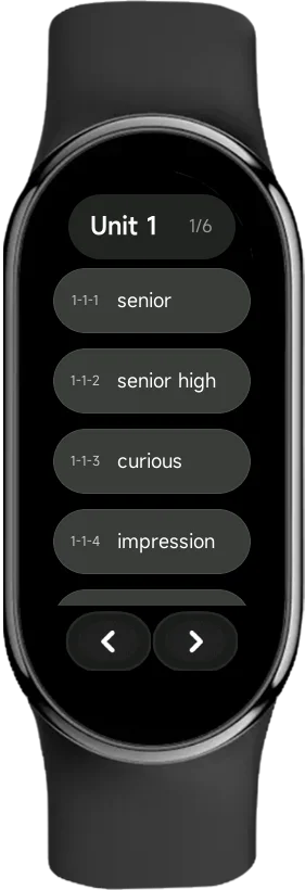 你可以左右滑动来切换单词,每一个卡片都有英文、音标和释义