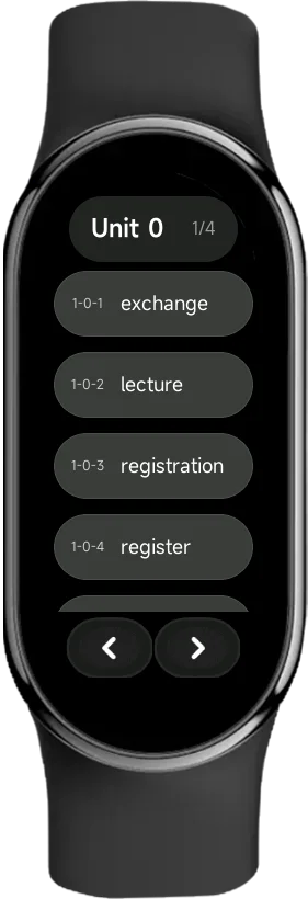 你可以左右滑动来切换单词,每一个卡片都有英文、音标和释义