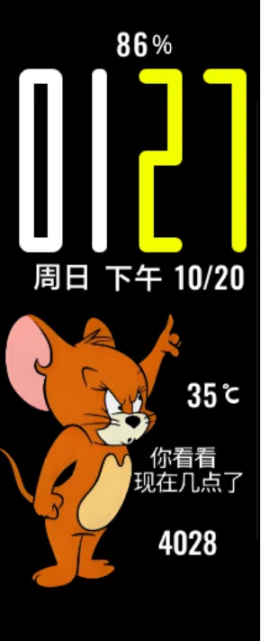 11月2日更新了温度显示 新版本的杰瑞,增加了电量,步数往上调了,息屏也换成了杰瑞 时幻同学因某种原因登不上去,现有这个号更新之前的表盘