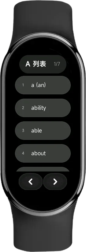 你可以左右滑动来切换单词,每一个卡片都有英文和释义