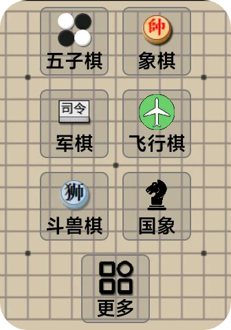 五子棋,象棋,军棋,飞行棋,斗兽棋,国际象棋