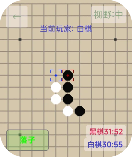 支持多种AI博弈;支持本地双人对战;支持专业计时规则模式;支持自由拖动棋盘;支持远、中、近三种缩放级别视野缩放;支持多种大小的棋盘设置;支持落子跟踪;支持特色娱乐模式;支持同一应用多种棋类,节省空间。