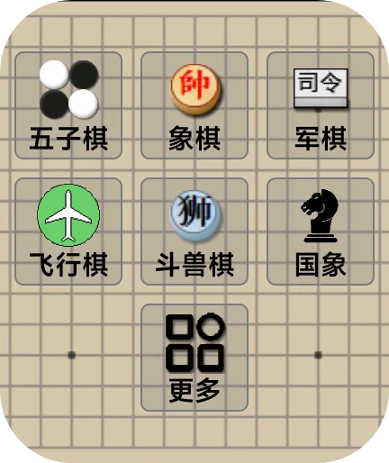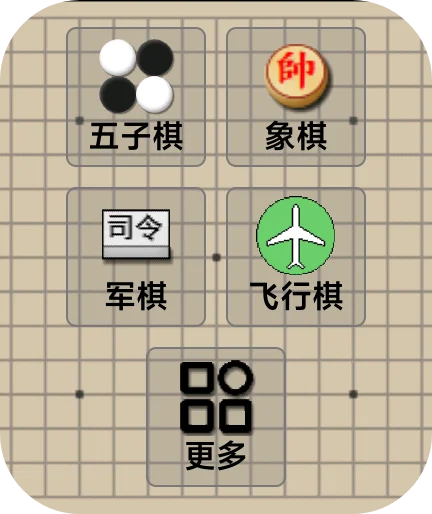 五子棋,象棋,军棋,飞行棋,斗兽棋,国际象棋