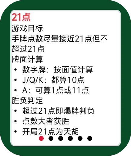 【界面相关】:界面美观,有发牌动画,还有玩法指南。