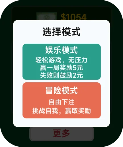 【双重玩法模式】:开局1000元,(娱乐模式)破产领低保,无压力轻松练手。(冒险模式)真实钱包系统,自由下注,感受心跳加速的刺激博弈!