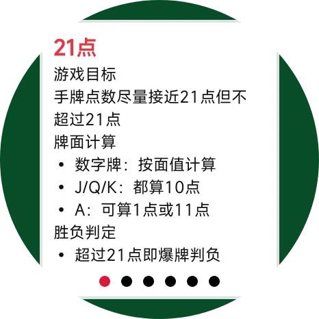 【界面相关】:界面美观,有发牌动画,还有玩法指南。