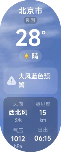 默认同步实况天气,未来24小时天气,预警信息