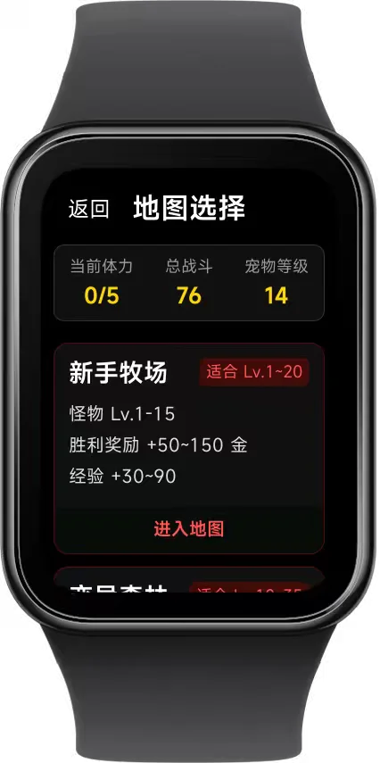 · 战斗系统:选择地图(新手牧场、变异森林、感染区域、BOSS领地),使用普攻、重击、治愈等技能与怪物对战。胜利获得金币和经验,失败也有少量经验。