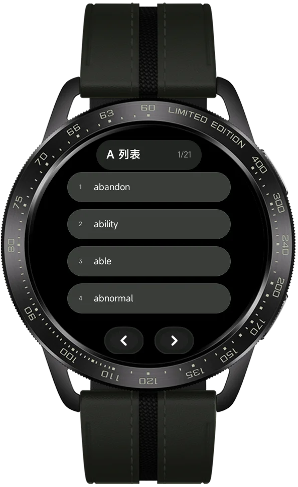你可以左右滑动来切换单词,每一个卡片都有英文、音标和释义