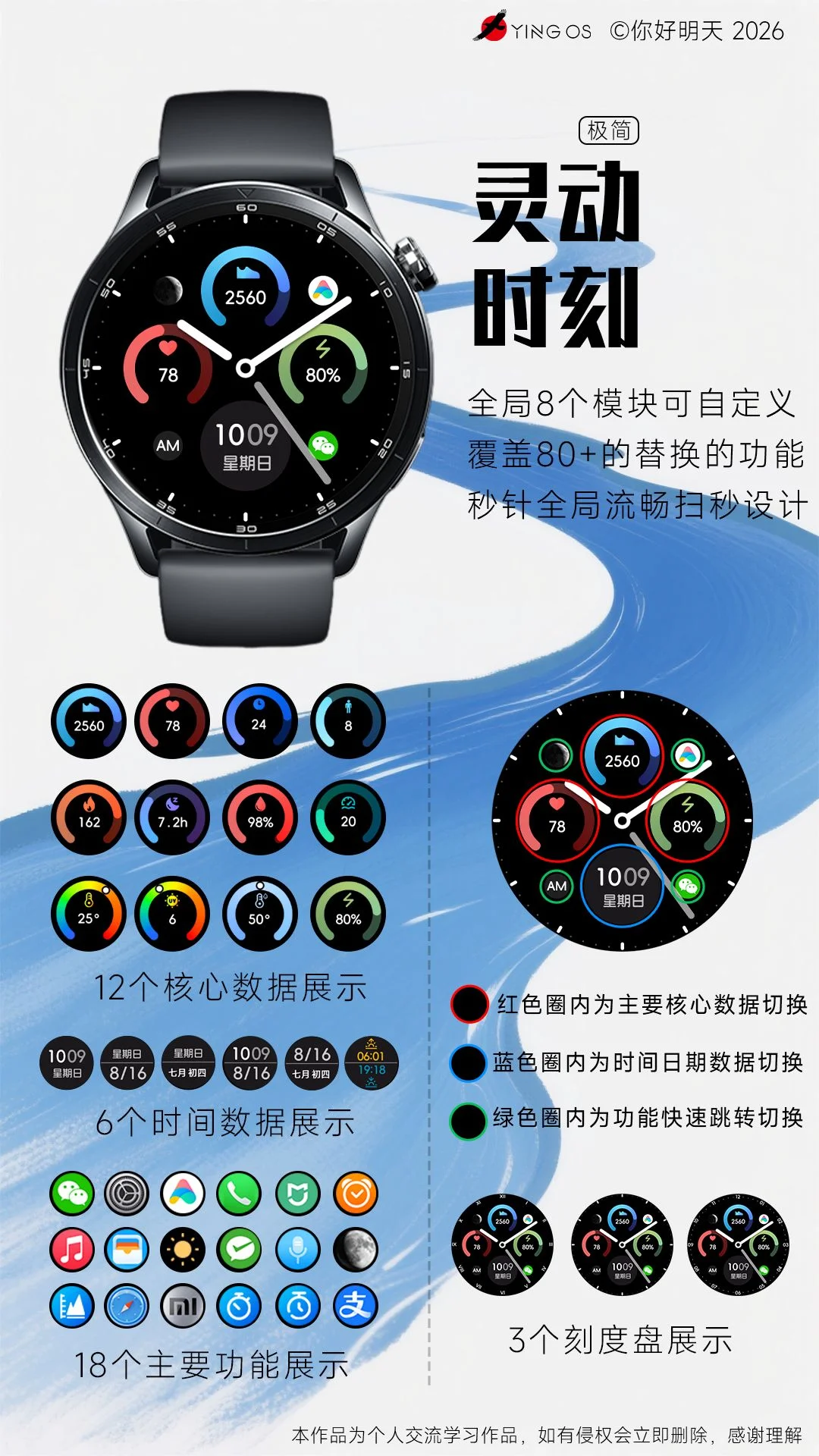 Xiaomi Watch S5极简多模块多功能表盘《灵动时刻》