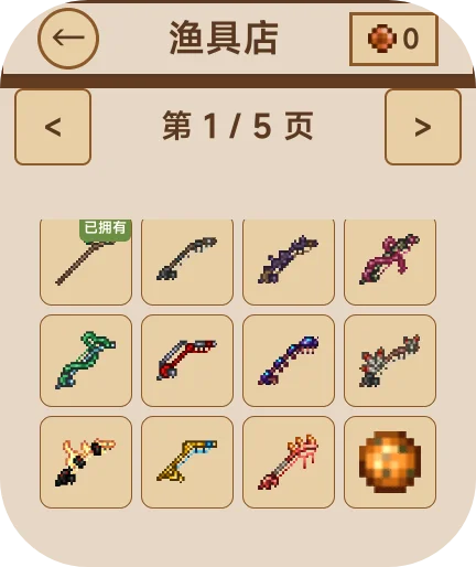 11种炫酷钓竿。43种饵料,34种食物等超丰富内容。