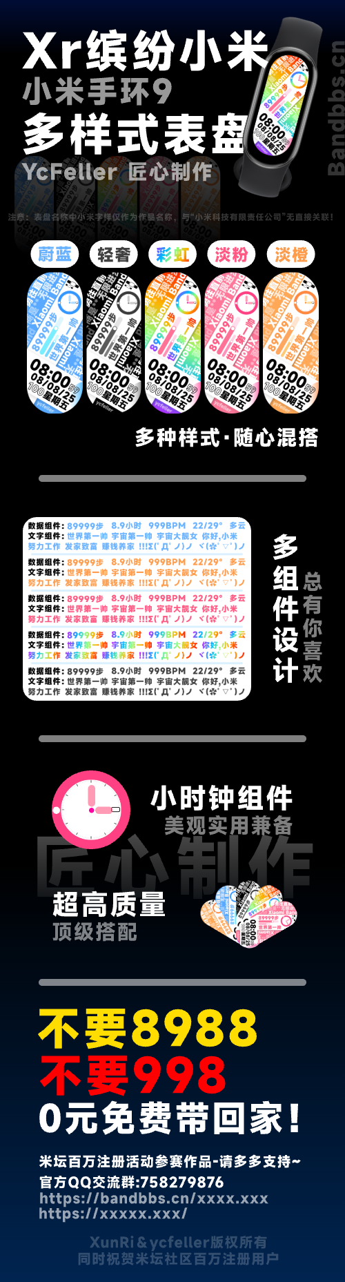 ycfeller 提交新资源: 【百万注册表盘大赛作品】Xr缤纷小米多样式表盘 - Xr缤纷小米多样式表盘,多彩多样随心搭配,欢迎下载体验 【百万注册表盘大赛作品】Xr缤纷小米多样式表盘 原创匠心制作,大家多多支持~ Xr缤纷小米多样式表盘,多彩多样随心搭配,欢迎下载体验; 有问题请及时反馈至QQ交流群中! 注意:表盘名称中小米字样仅作为作品名称,与“小米科技有限责任公司”无直接关联! —————————— 版本号记录: V1.0.1:正式发布; —————————— QQ交流群:758279876 浏览附件31349 浏览附件31350 点击展开... 阅读关于此资源更多信息...