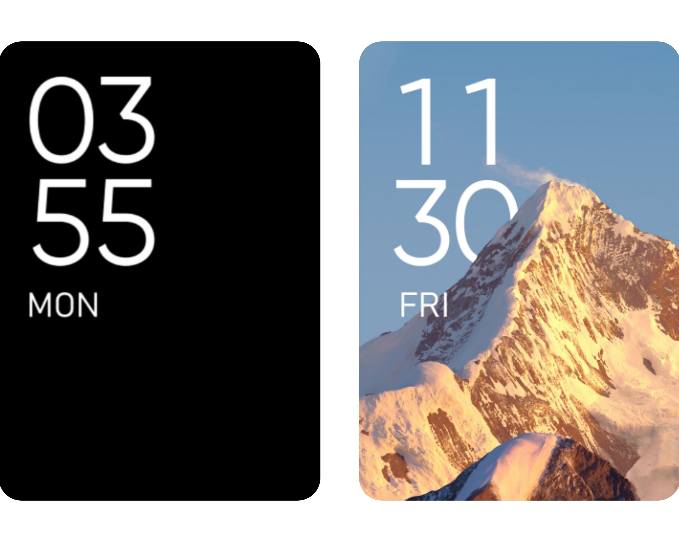 以雪山为主体的自然风光表盘,实现了雪山主体景深效果,简洁高效。
