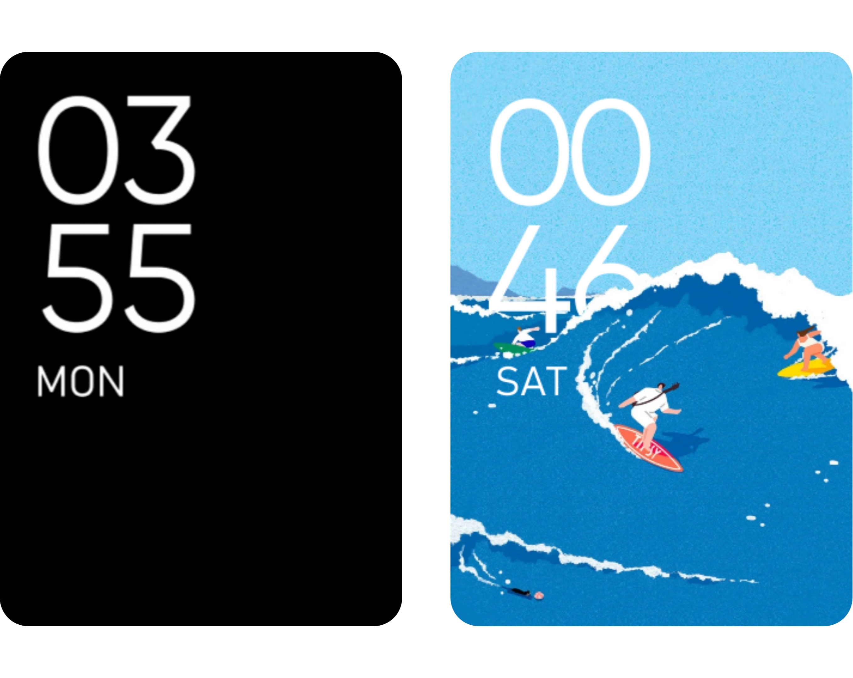 以卡通形象为主体的插画表盘,实现海浪景深效果。