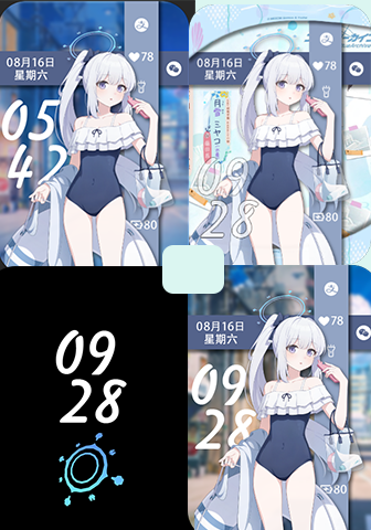 【礼盒】雪月宫子泳装表盘(支持人物表情切换,自定义组件切换,息屏,多种样式,和背景时间变化)