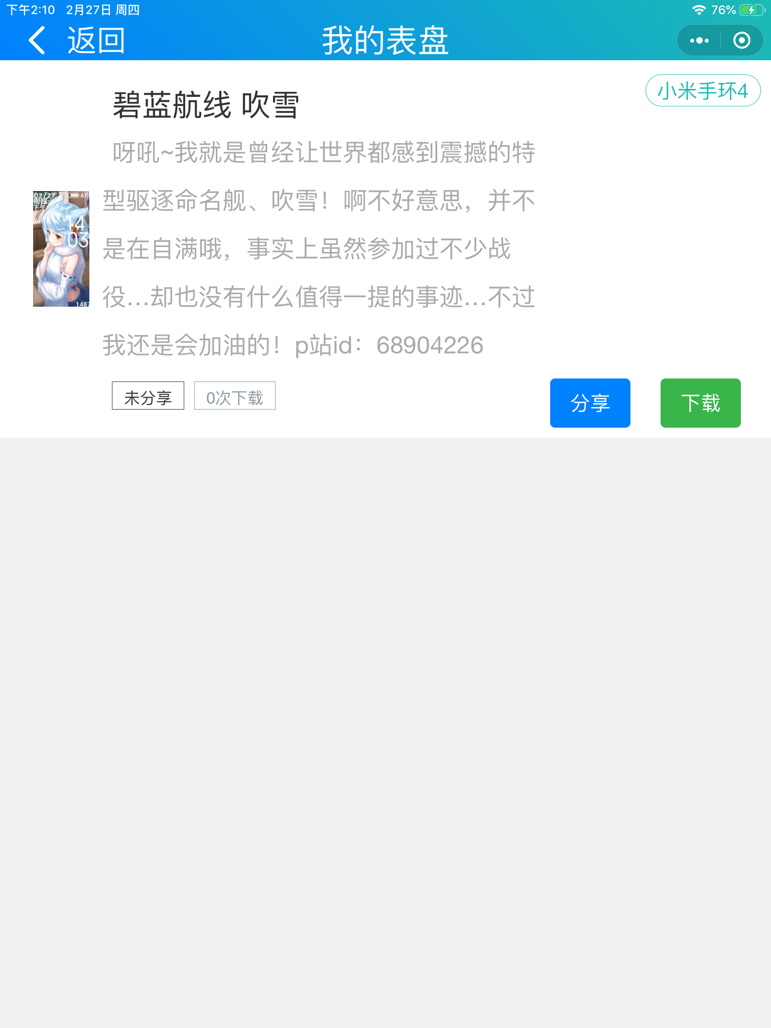 米环4表盘 【原创/首发/米环4表盘】碧蓝航线表盘 吹雪(桐)