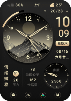 【免费】圆环时刻表盘改 - 运动健康表盘商店中的圆环时刻免费表盘很不错,但是默认带的熄屏幕显示不好看,自己替换了【尽杯酌】这个主题的熄屏显示。