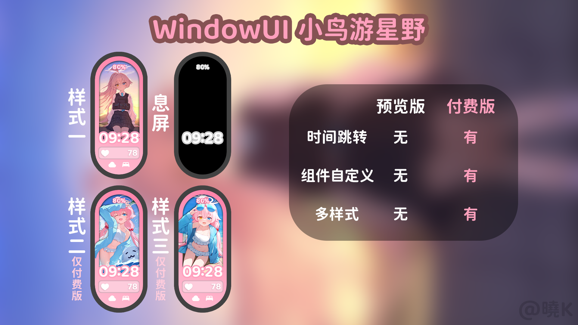 曉Kowo 提交新资源: ★付费表盘★【WindowUI】小鸟游星野表盘 | 支持预览 / 自定义组件 / 多样式 / 精美插画 - 形似窗而得名窗 人物溢出表盘的感觉 浏览附件44581 付费版点此跳转购买 点击展开... 阅读关于此资源更多信息...