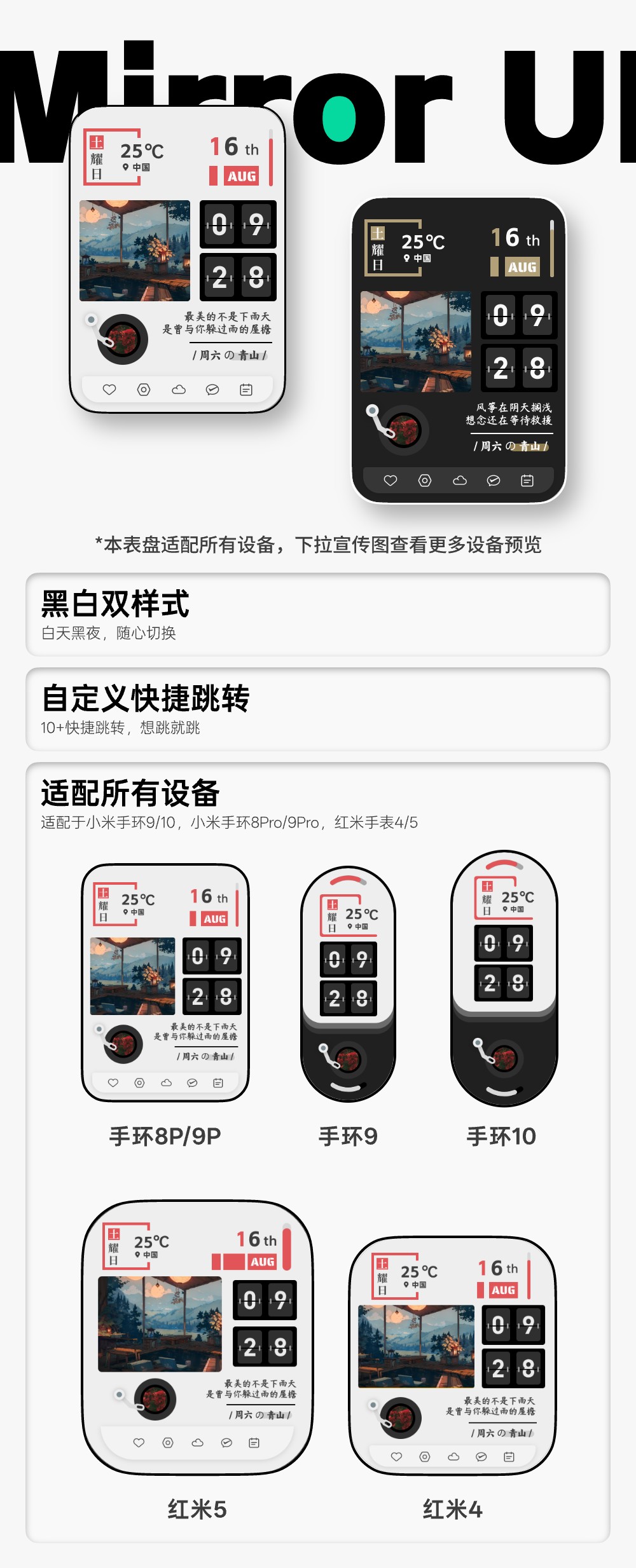 【Miband10】《MirrorUI》简约 | 复古 | 动态 | 歌词文案 | 可编辑跳转 - 双样式,支持自定义组件