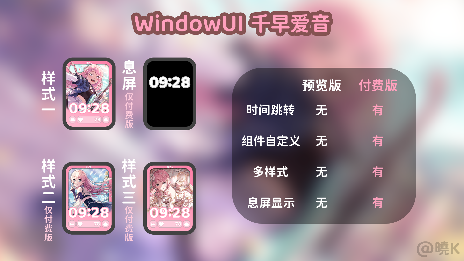 ★付费表盘★【WindowUI】千早爱音表盘 | 支持预览 / 自定义组件 / 多样式 / 官方立绘