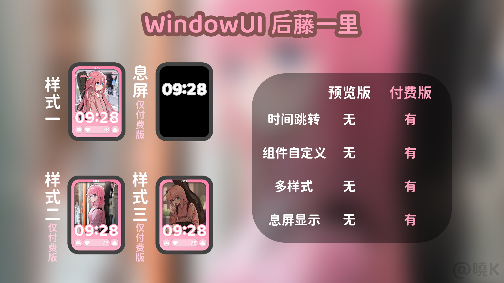 ★付费表盘★【WindowUI】后藤一里表盘 | 支持预览 / 自定义组件 / 多样式 / 精美插图