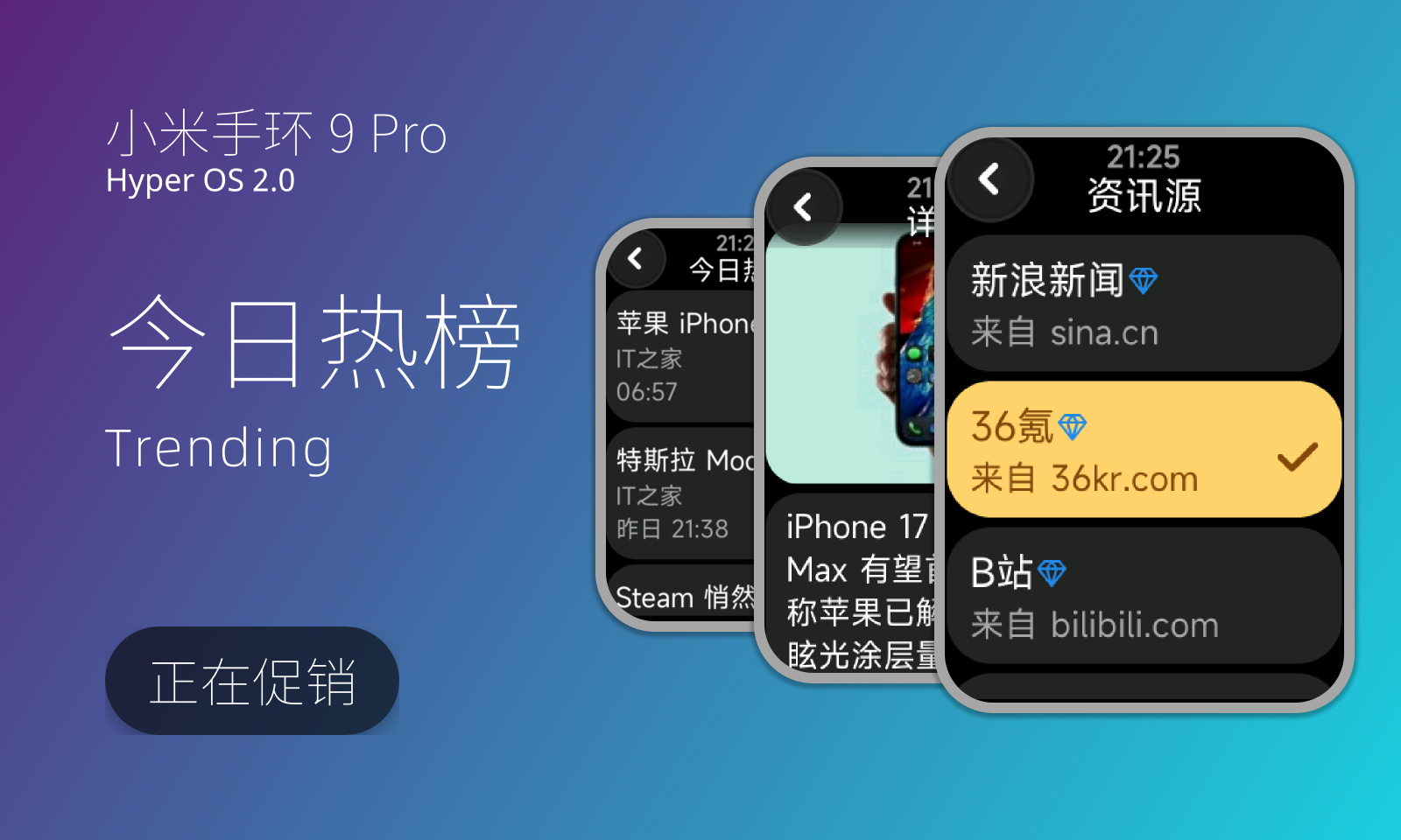 今日热榜 - Trending - 通过手环快速查看各个平台的热榜!