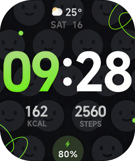背对疾风吧 提交新资源: 微笑图腾 - 美观耐看的大数字、暗色系表盘! 浏览附件45972 表盘介绍: 美观耐看的大数字、暗色系表盘,表盘商店中扛把子的存在,移植自红米手表4的同名官方表盘 跳转说明: 1.点击左上角,跳支付宝支付 2.点击右上角,跳微信支付 3.点击天气、温度,跳天气 4.点击星期、日期,跳日历 5.点击时钟,跳应用列表 6.点击分钟,跳倒计时 7.点击卡路里、步数,跳活力指标 8.点击底部区域,跳手电筒 点击展开... 阅读关于此资源更多信息...