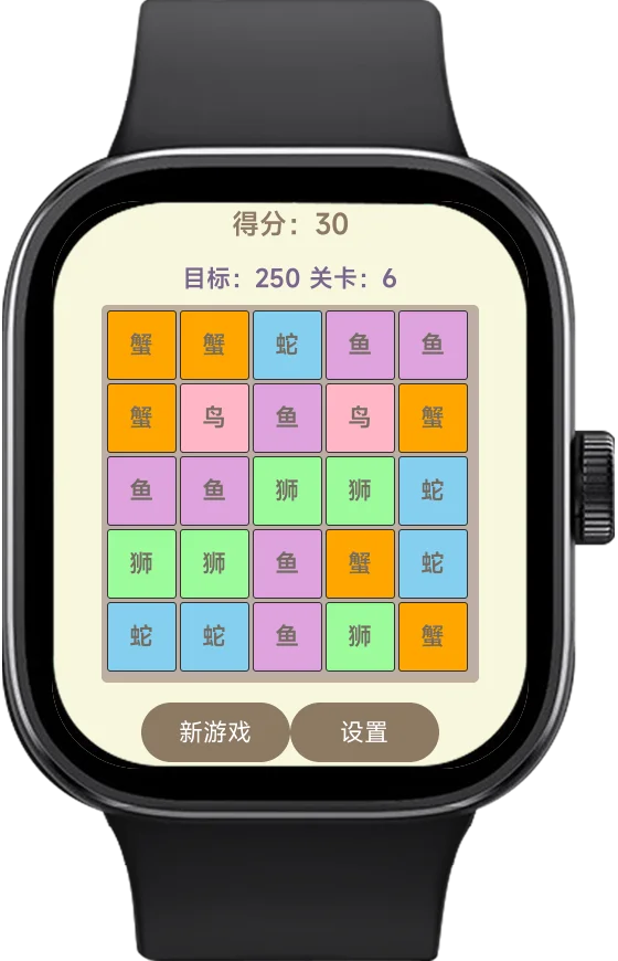 cahkcs 提交新资源: 消消乐游戏 - 腕间消除大作战 游戏介绍 - 支持redmi4以上,米环pro8,小米手表3以上以上的消除类游戏 五大游戏特色 - 包括丰富的动物角色、精心设计的关卡系统、精美的视觉效果、沉浸式游戏体验和专为智能手表优化 游戏玩法 - 米环版本难度更简单(9*4);普通版本(5*5) 游戏亮点 - 强调了游戏简单易上手、挑战性强等特点 适用设备 - 明确指出适用于小米智能手表等可穿戴设备 游戏操作 - 点击操作,动物被选中(动物名字变为中)然后选择上下左右进行交换,3个以上动物自动消除 浏览附件48090浏览附件48091... 点击展开... 阅读关于此资源更多信息...