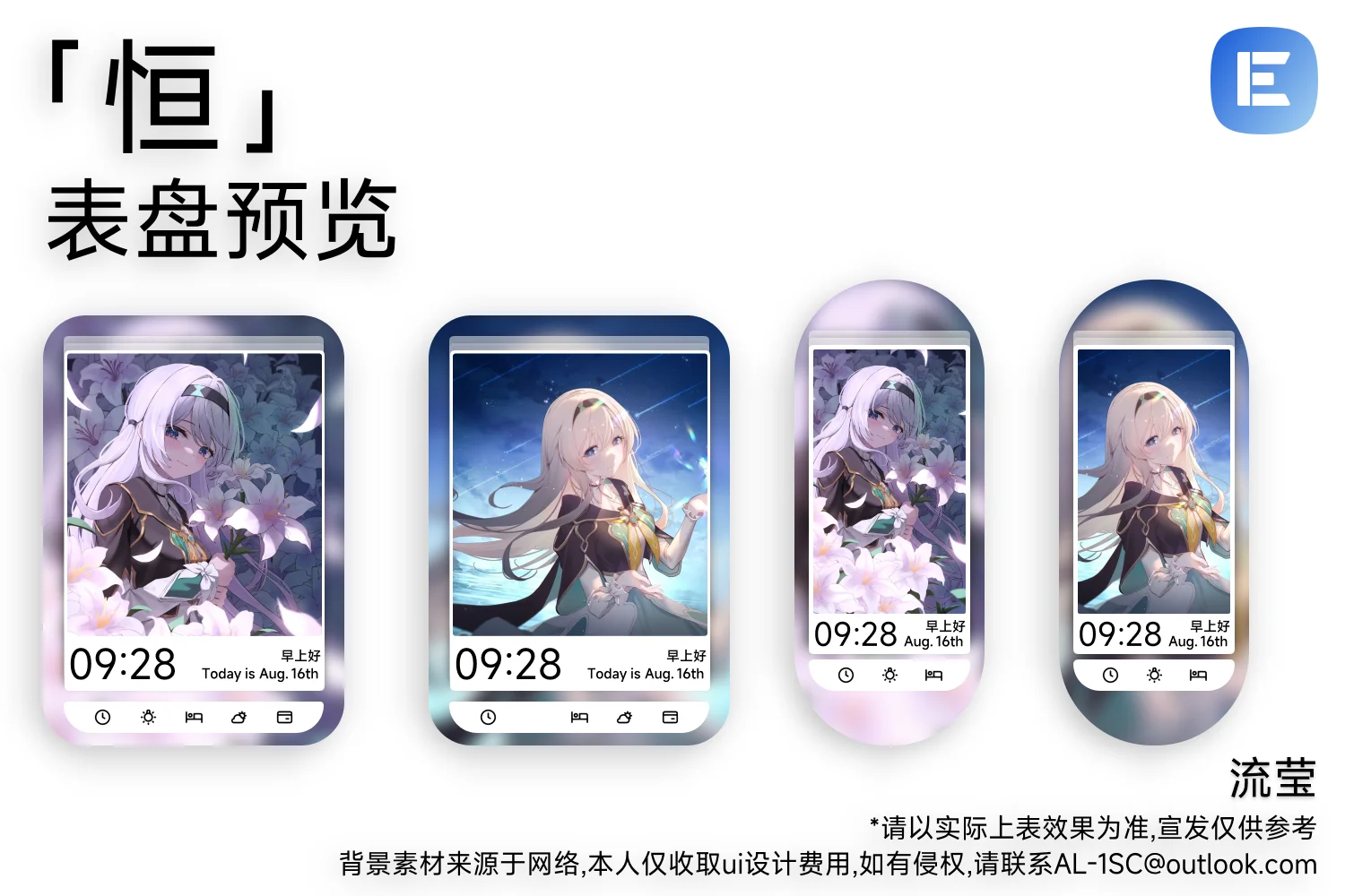 sees 提交新资源: 「恒」-昔涟&流莹 - 无 『表盘特点』 『支持缓慢亮屏』 『支持多样式切换(8个样式,样式一为时间感知)』 『支持时间感知,一天一换,天天不一样』 『支持小组件编辑』 『售价仅2.5CNY,干翻友商』 『友商是傻逼!』 浏览附件53556浏览附件53558浏览附件53559浏览附件53560浏览附件53561浏览附件53562 点击展开... 阅读关于此资源更多信息...