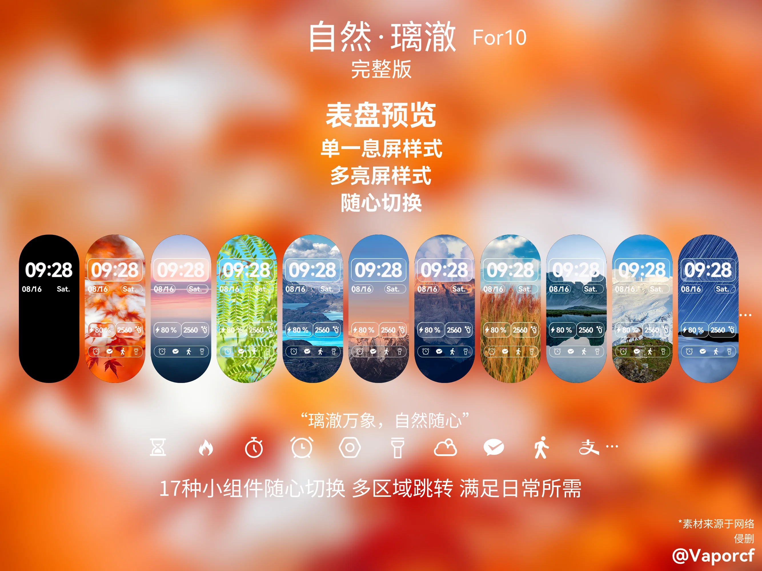 Vaporcf 提交新资源: [贰]自然·璃澈 - “璃澈万象,自然随心” “璃澈万象,自然随心” 此表盘为付费表盘(2.35元) 此表盘特点: 1.息屏显示 2.多组件跳转 3.10种亮屏样式切换 4.17种组件切换(下图仅部分) …… *素材来源于网络 侵删 浏览附件55162浏览附件55163 点击展开... 阅读关于此资源更多信息...