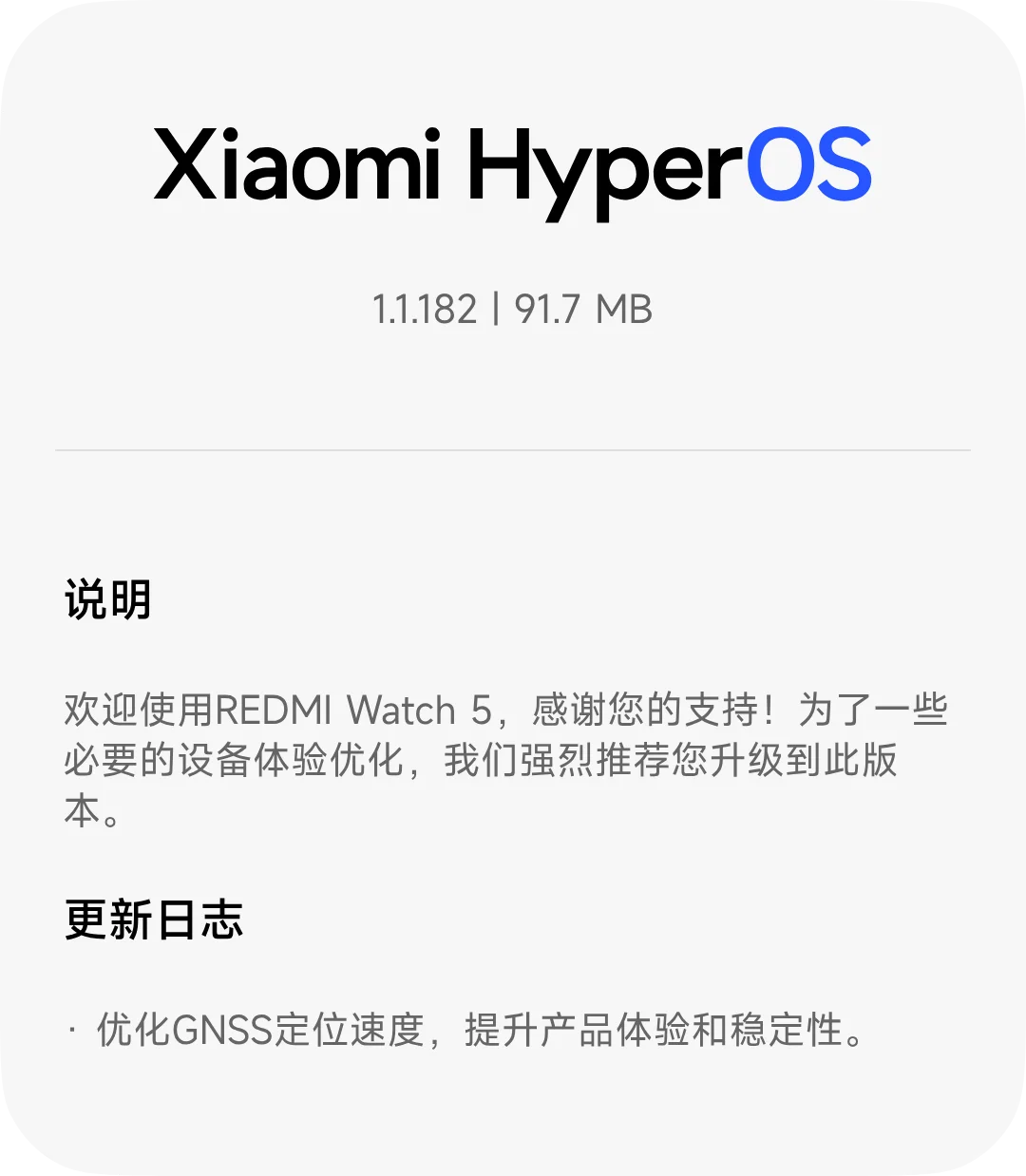 xinghengCN 升级了 REDMI Watch 5 蓝牙版【国行】 HyperOS 2/3 官方固件 的新版本: 【HyperOS2】1.1.182 浏览附件57968 点击展开... 阅读此次升级的详细信息...