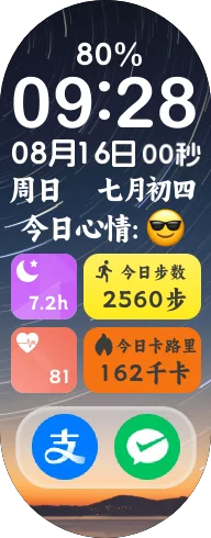 [自然]多功能表盘重磅来袭,12个样式🔥,两个27个自定义跳🔥转基本上包含所有系统应用,24个今日心情🔥自定义切换,左边两个健康数据🔥自定义位置,右边两个组件五种数据🔥自由切换(天气,卡路里,步数,中高强度训练,站立次数),获取详情加入q群1071055769,更多样式背景可联系q1005656666定制,走过路过不要错过,接定制同上加q,设计灵感来源于NEORUAA超级桌面,素材来源于网络,侵权联系删除,次相处下载为带水印预览版浏览附件59460