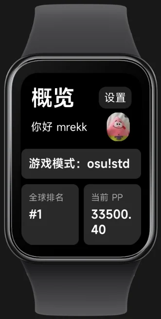 狐狐子 提交新资源: 腕上OSU身份卡 - 一个为拥有小米vela穿戴设备的osu玩家设计的身份牌 腕上OSU身份卡浏览附件62538 腕上osu身份卡是一款可以在Xiaomi Vela手表和手环上展示您的osu账户信息和成绩的App,目前仍处于开发中。 所有具备网络能力的小米 Vela 穿戴设备(包括蓝牙网络连接和蜂窝网络连接),具体如下 小米手环 8Pro 小米手环 9/9Pro 小米手环 10 红米手表 5/5esim 红米手表 6 小米手表 s3/s4/s5 系列 请注意,目前 UI 界面上仅对方屏手表/手环进行了适配;圆形屏幕可以正常使用,但布局会有些许错位;药丸屏无法正常显示内容,请等待后续开发。 前往osu.ppy.sh,登录您的osu账号... 点击展开... 阅读关于此资源更多信息...