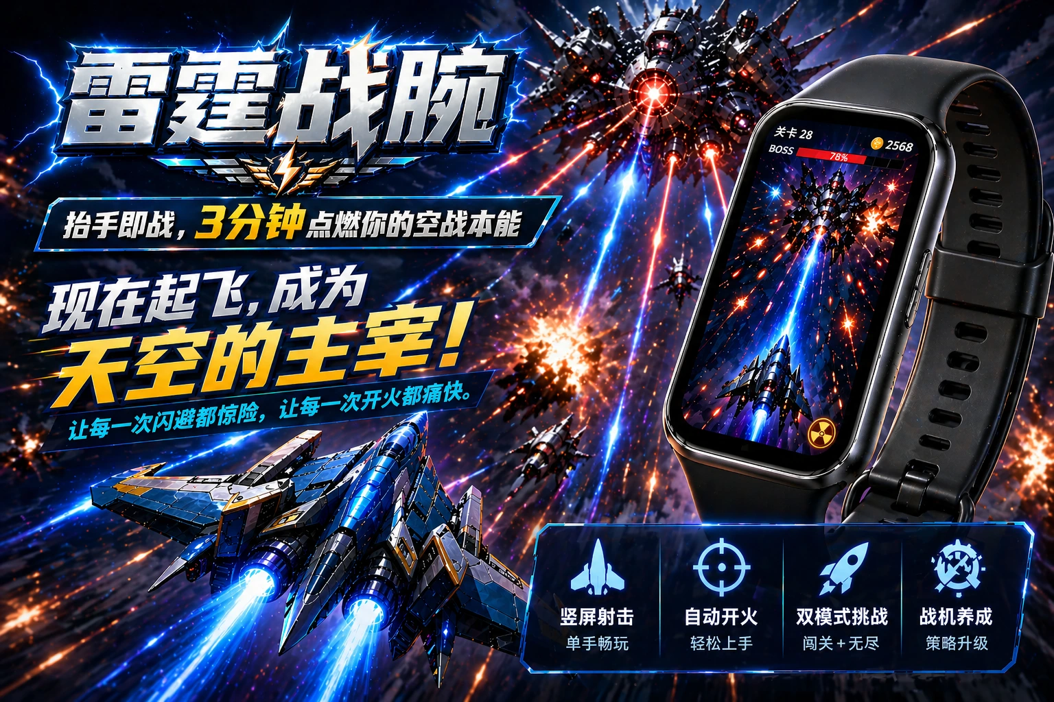 雷霆战腕 V1.0 发布 - 雷霆战腕——抬手即战,随时随地都能畅玩的高燃空战射击游戏。