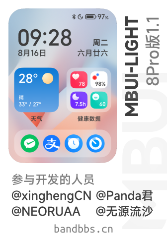 zhengtian 升级了 MBUI-LIGHT 的新版本: 正式版本1.1 1.优化小组件位置 2.天气到夜晚会有专属夜晚背景 3.预览图更新‘参与开发的人员’及更多 浏览附件20731 点击展开... 阅读此次升级的详细信息...